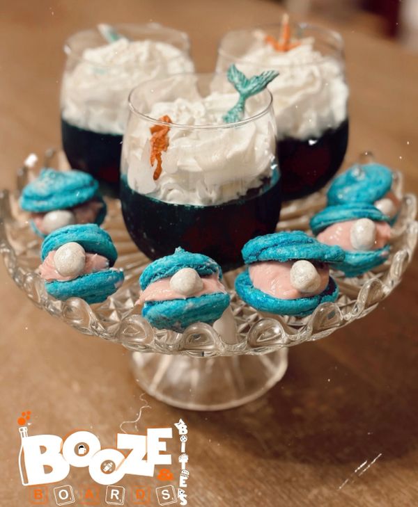 Make blue jello packet quick set method and pour into your 'fish bowls'